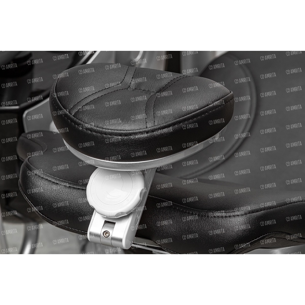 - Современное кресло пациента, шовная обивка из импортной фиброкожи, широкая спинка с металлическим антивандальным основанием.