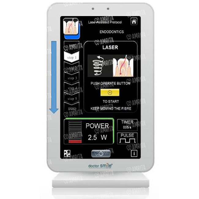 - Новый цветной высококонтрастный жидкокристаллический дисплей. Все параметры, такие как мощность, время и режимы работы четко видны во время использования лазера. Программное обеспечение и меню стоматологического диодного лазера Doctor Smile Wiser, легко в освоении и интуитивно понятно, что позволяет быстро выбрать заданный режим работы. Интерфейс переведен на пять языков: английский, итальянский, французский, немецкий, испанский. Перевод на русский язык отсутствует.