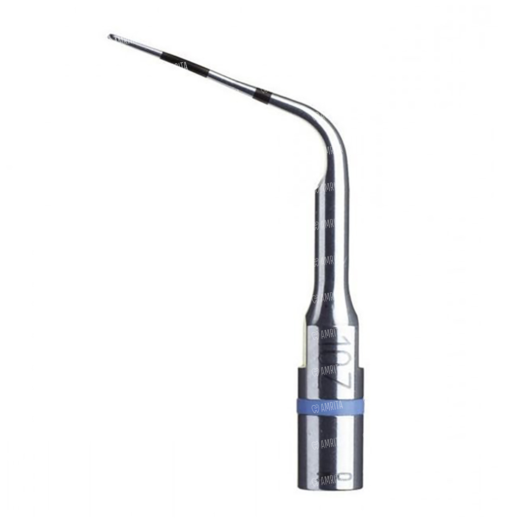 - 10Z, арт. F00254 — насадка пародонтологическая диагностическая. Поддесневая. Имеет эллиптическое сечение малого радиуса, с нанесенной на поверхность неметрической маркировкой 3 деления с шагом в 3 мм, и одно деление 1 мм, в виде напыления нитрит алюминия. Применяется как пародонтологический зонд для зондирования обрабатываемых пародонтальных карманов перед началом работы для уточнения топографии дна пародонтальных карманов. Во включенном состоянии может удалять небольшие конгломераты над и поддесневого камня. Имеет атравматичный закругленный кончик, на мощности 10-15 не разрушает периодонтальные прикрепления. Амплитуда увеличена до 75%