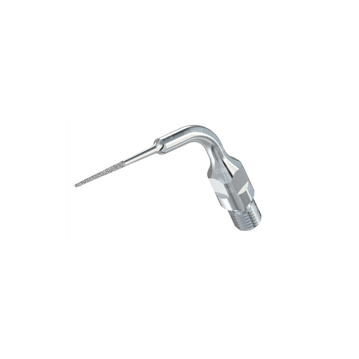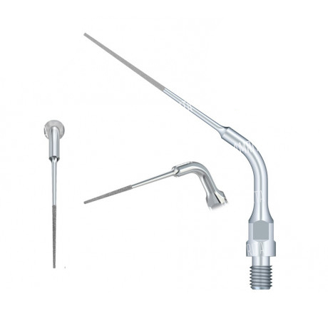 Насадка ES4 для ультразвукового скалера имеет тонкий и длинный кончик с алмазным напылением. Насадка используется для извлечения материала и инструментов из верхней половины корневого канала.