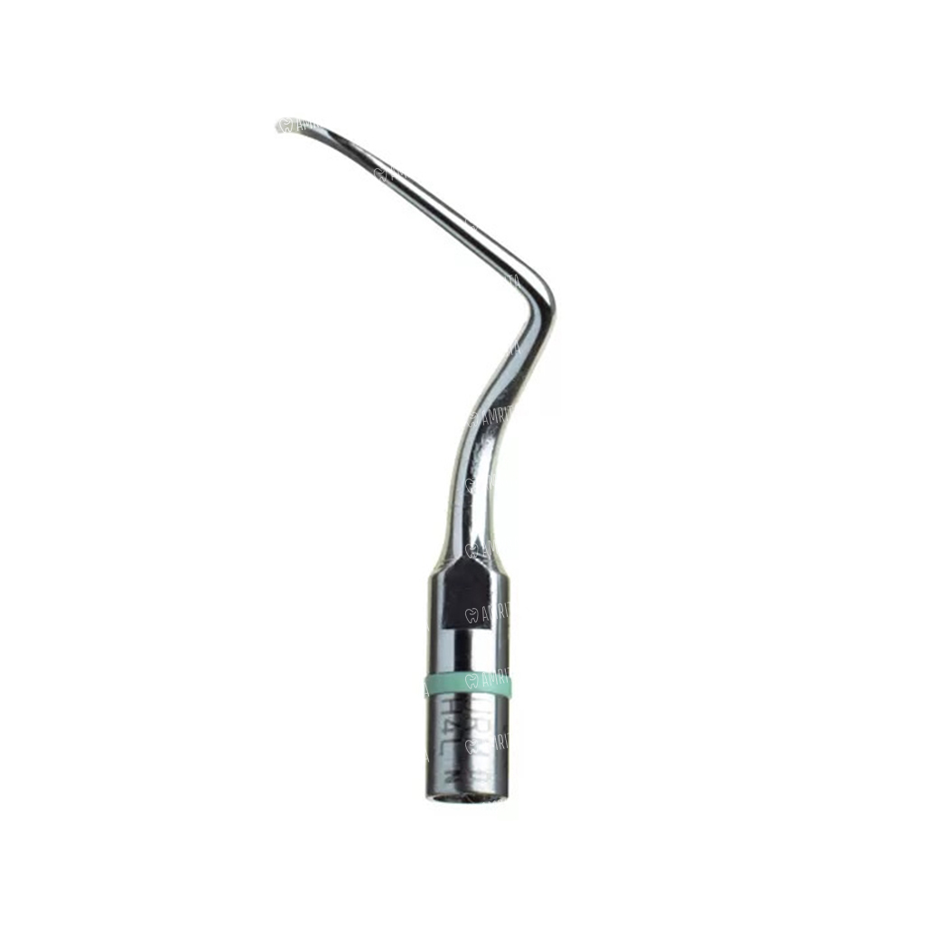 - H4L, арт. F00114 — универсальная левосторонняя пародонтологическая насадка для премоляров и моляров. По форме функционального стержня повторяющая форму универсальной кюреты Лангера 1-2. Рабочей кончик лезвия заточен с двух граней. Применяется при профессиональной гигиене, удалении больших и средних конгломератов зубных отложений в области фронтальной группы зубов верхней и нижней челюсти. Благодаря наличию лезвий с 2х сторон кончика позволяет обрабатывать части периметра корней боковой группы зубов слева (лингвальные поверхности) или вестибулярные поверхности жевательных зубов справа. Зеленая полоса (пародонт)