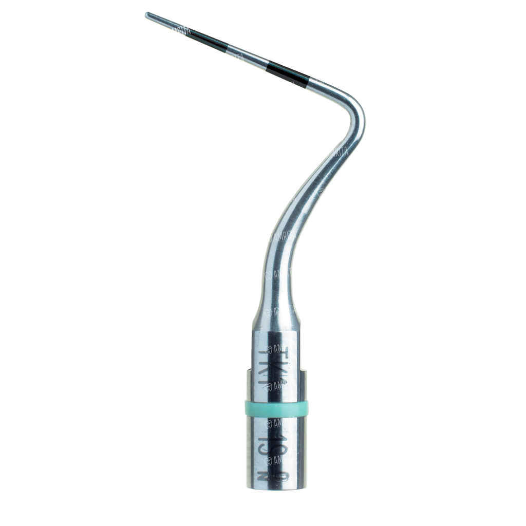 - TK2-1R, арт. F02161 — правосторонняя насадка, используется в средних и глубоких карманах с фуркациями (более 4 мм), (пародонт). Одна из основных пародонтологических насадок, позволяющих обрабатывать весь периметр шейки зубов и корней зубов в боковых секстантах зубных рядов (1, 3, 4, 6). Имеет круглое сечение малого радиуса, функциональный стержень имеет изгиб в левую сторону, адаптированный для обработки лингвальных поверхностей секстанта 6 и вестибулярных поверхностей секстанта 3. Во включенном состоянии может удалять небольшие конгломераты поддесневого камня. Имеет атравматичный закругленный кончик, на мощности 2-3 не разрушает периодонтальные прикрепления в области дна пародонтального кармана. Низкая амплитуда для лучшего тактильного контроля и атравматичного лечения