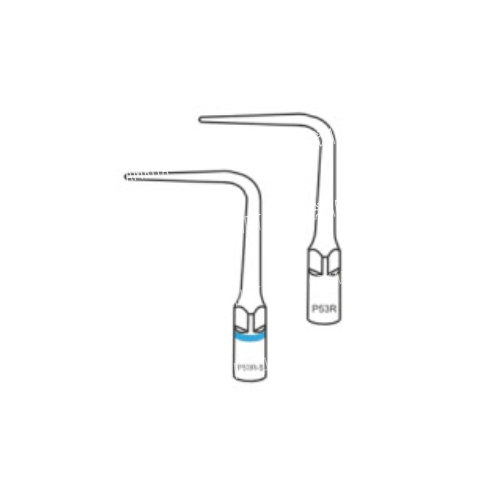 Насадка с изгибом вправо используется для зондирования поддесневого камня, скейлинга проксимальной поверхности корня.