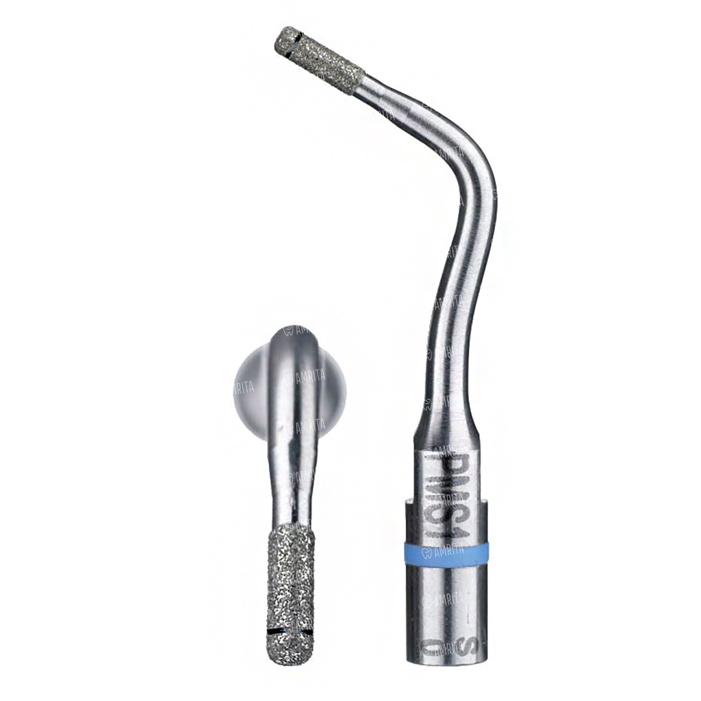 - Насадка PMS1, арт. F02254 — с алмазным покрытием, предназначена для препарирования уступа. Выпукло-закругленный кончик. Алмазное покрытие 76 мкм