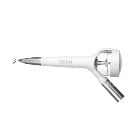 Порошкоструйный наконечник AIR-N-GO Easy является продуктом нового поколения AIR-N-GO и предназначен для наддесневой обработки (в основном для работы по эстетическим показаниям). Он почти мгновенно может превращаться в PERIO-систему для лечения пародонтальных заболеваний и периимплантита. Чтобы сделать это, необходимо лишь установить другую насадку и подключить другую ёмкость, которая содержит специальный порошок. После этого Air-N-Go из прибора для снятия зубного налета превращается в аппарат для поддесневого ухода за зубом или имплантатом и тщательного удаления бактерий. Таким образом, врач может осуществлять и эстетические, и лечебные манипуляции с помощью одного инструмента.