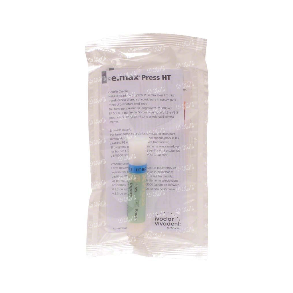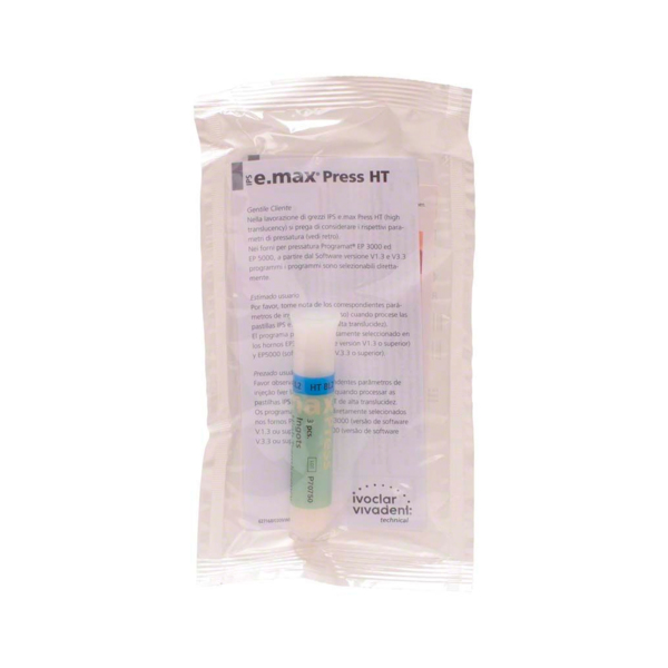 Заготовки IPS e.max Press HT (High Translucency – высокая прозрачность) отличаются высокой прозрачностью, за счет чего идеально подходят для изготовления полноанатомических прессованных реставраций (техника окрашивания). Выпускаются в 16 цветах A–D и 4 ультрасветлых цветах Bleach.