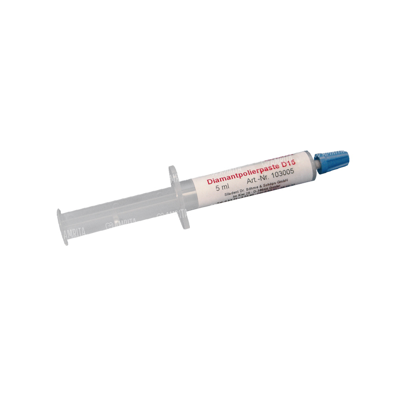 Алмазная паста D15 имеет очень высокий абразивный потенциал. Предназначена для сглаживания неровностей на кобальтохромовых поверхностях.