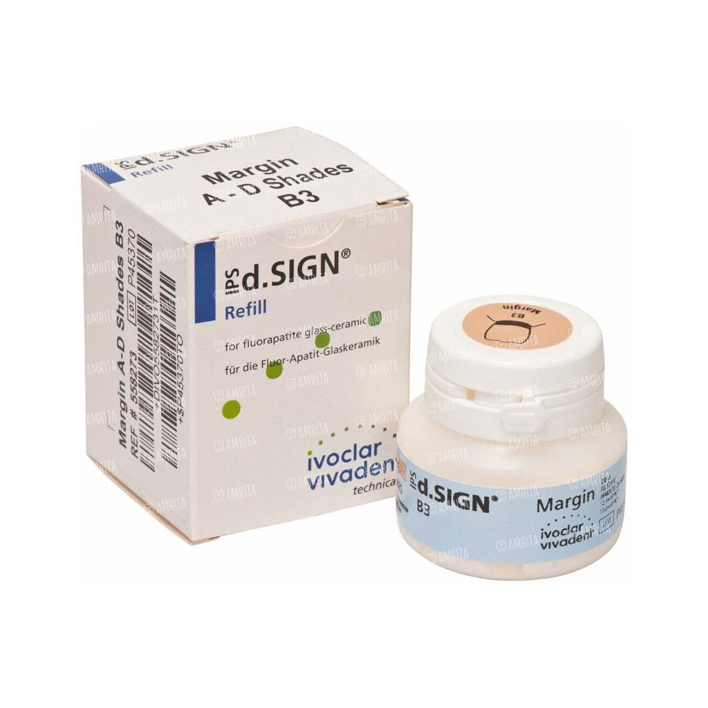 Плечевая масса IPS d.SIGN Margin используется для формирования керамического плеча в области уступа. Масса выпускаются в цветах Chromascop и A-D. Дополнительно предлагаются 4 интенсивных плечевых массы для создания специальных эффектов.