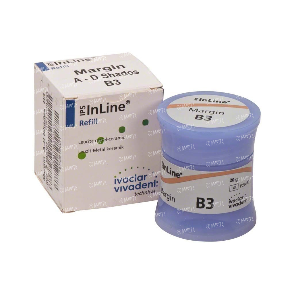 Плечевые массы IPS InLine Margin служат для формирования керамического уступа. Для создания специальных эффектов необходимо использовать интенсивные плечевые массы Intensiv Margin, а для окончательной корректировки плеча - плечевую массу Margin Add-On.