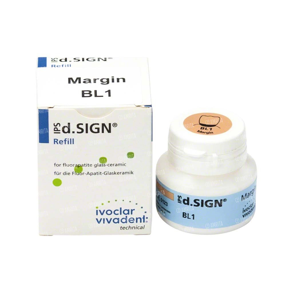 Ультрасветлые плечевые массы IPS d.SIGN Margin Bleach имеют четко выраженные цветовые оттенки, которые позволяют соответствовать высочайшим требованиям современной «белой эстетики». С помощью этих масс формируется керамическое плечо в области уступа. Массы выпускаются в цветах Chromascop и A-D. Дополнительно предлагаются 4 интенсивных плечевых массы для создания специальных эффектов. Плечевая корректировочная масса Margin Add-On служит для окончательной коррекции плеча.