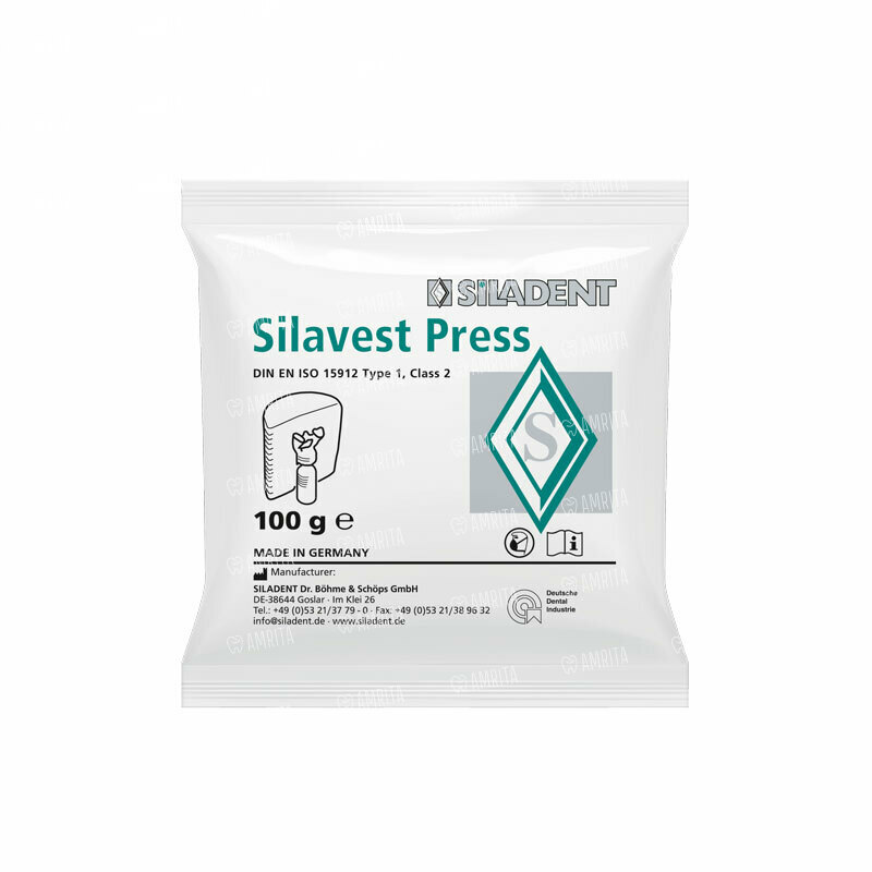 Фосфатный, не содержащий графита паковочный материал Silavest Press используется для высокоточного изготовления слепков в пресс-керамике. Подходит для всех прессовочных керамических систем со всеми видами прессования и напрессовывания. Можно прокаливать быстрым методом «теплового шока».