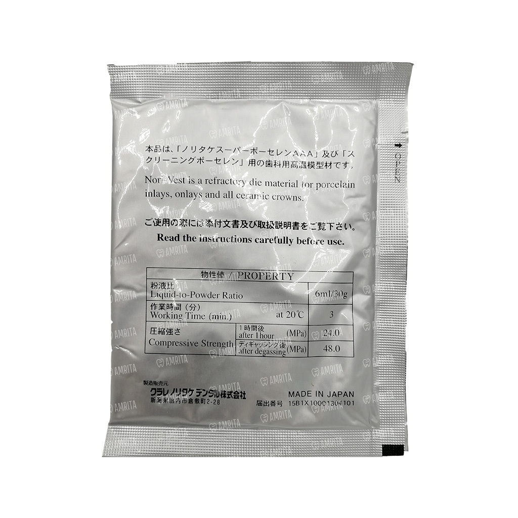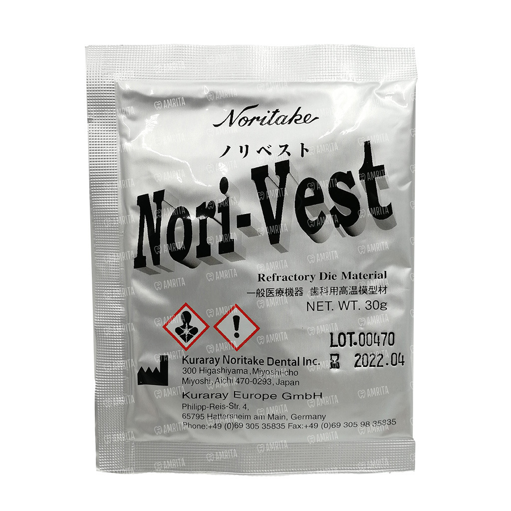 Огнеупорный материал NORI-VEST используется для изготовления штампиков и огнеупорных моделей для фарфоровых многослойных виниров, вкладок, накладок и цельно-керамических коронок.