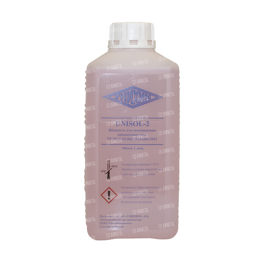 UNISOL-2 – жидкость для замешивания фосфатной паковочной массы для точного литья коронок, мостовидных протезов и пресс-керамики, нагреваемой быстрым и традиционным способом. Жидкость не является устойчивой к низким температурам. Температура хранения и транспортировки: от +5° до +35°С.