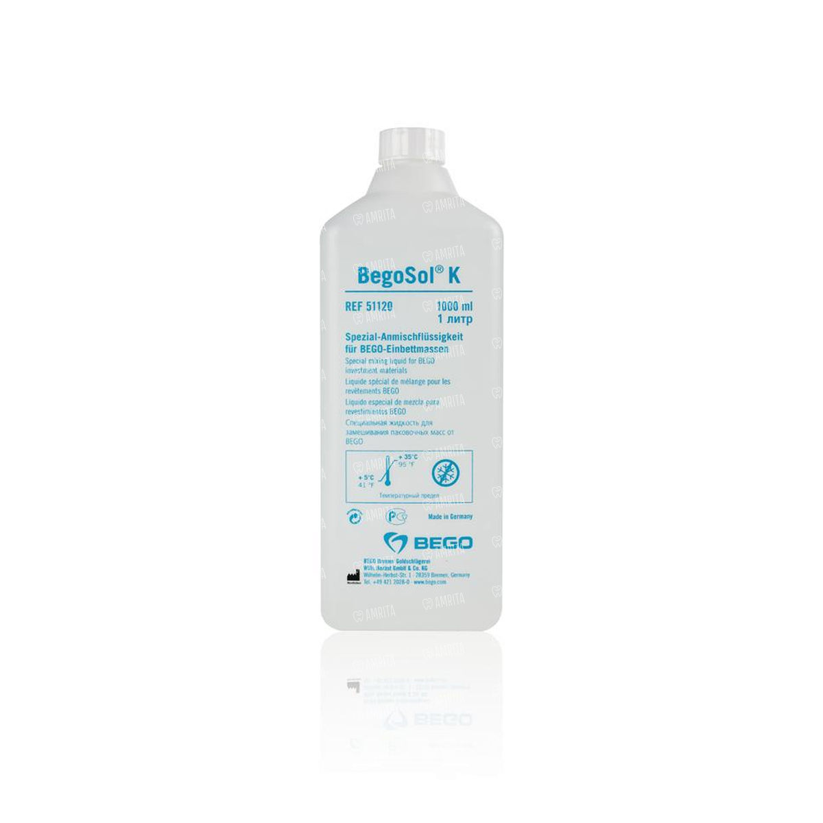 - BegoSol K (чувствительная к низким температурам) - специальная жидкость для замешивания WiroFine, BellaStar XL, VarseoVest Pplus, 1 л, арт. 51120