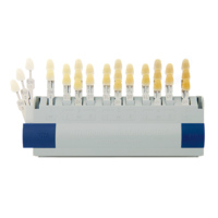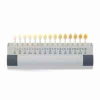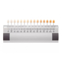 Керамическая палитра — изделие разной формы, напоминает шкатулку с многочисленными ячейками. Зубной техник подбирает оттенок будущего искусственного зуба смешивая красители. После соединения нескольких цветов, получается несколько колеров, которые стоматолог затем вместе с пациентом выберет для дальнейшего изготовления протеза.