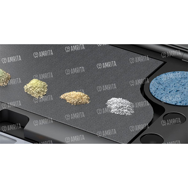 - Эргономичный дизайн включает в себя губку для очистки кисти, выдвижной модуль с палитрой для красок и уникальные полоски из синтетической кожи и целлюлозы, для транспортировки влаги из резервуара к Вашей керамической массе