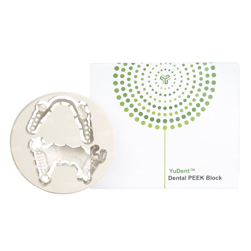 Высокоэффективный полимер YuDent Dental PEEK изготовлен на основе полиэфирэфиркетона и предназначен для изготовления безметалловых реставраций на основе CAD/CAM для фиксированных и съемных показаний (например, имплантатов, каркасов частичных протезов и т.д.) с использованием технологии фрезерования.