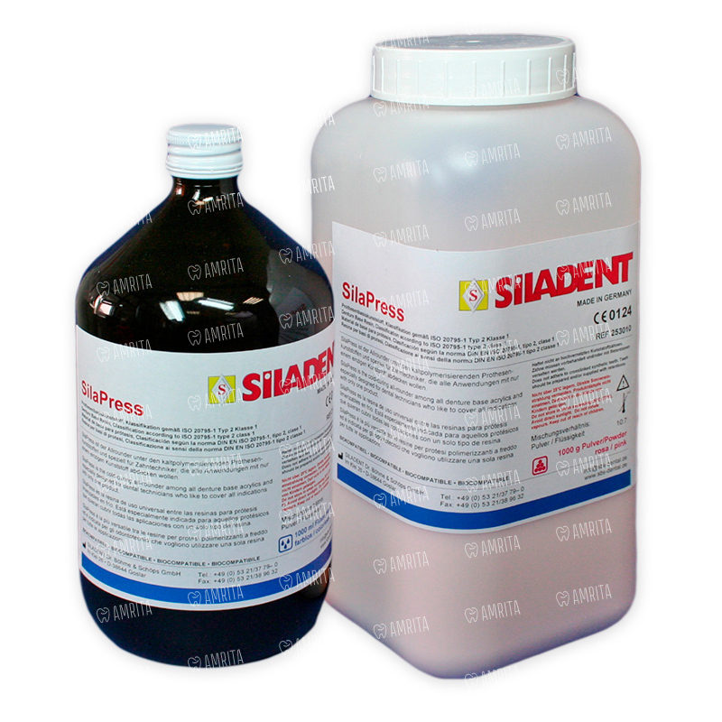 Автополимер Sila-X-Press на основе метилметакрилата выпускается в виде порошка и жидкости, применяется для изготовления протезов методом заливки и инъекции.