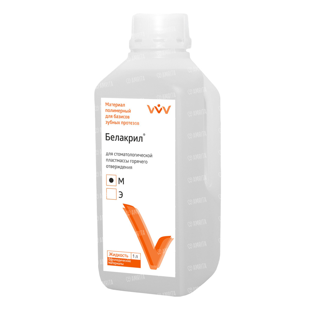 - Жидкость Белакрил-М выпускается только в виде отдельного изделия, содержит мономер метилметакрилат и предназначена для обезжиривания искусственных зубов и каркасов несъемных протезов.