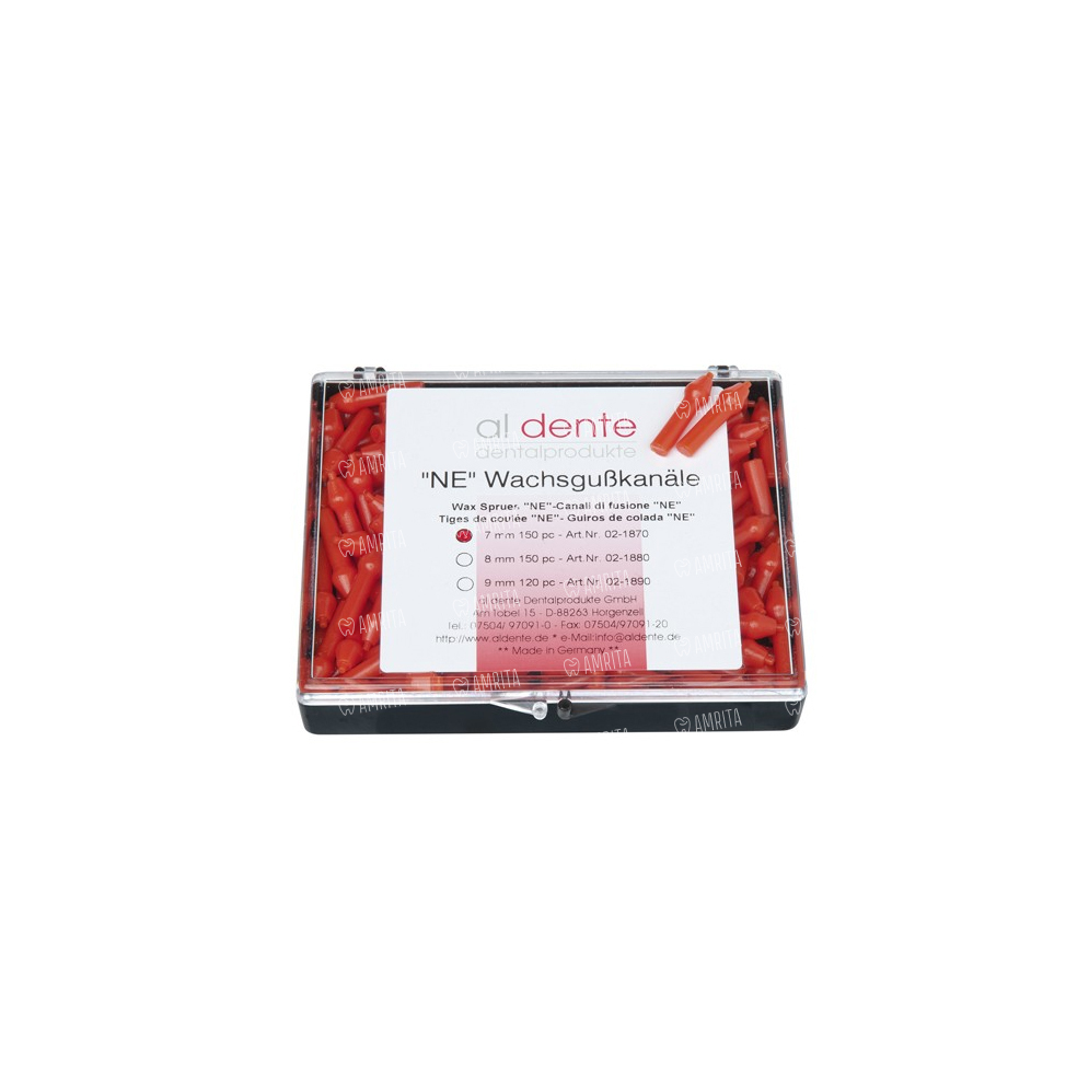 - Литые литники «NEM» с диаметром головки 7–8–9 мм и увеличенным поперечным сечением литника особенно используются для литья под давлением неблагородных сплавов и сплавов с пониженным содержанием драгоценных металлов