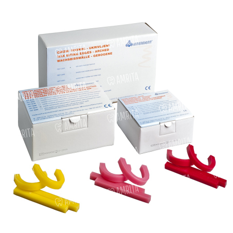 Восковые прикусные валики применяются для регистрации прикуса или определения окклюзионных соотношений беззубых челюстей пациента. Материал не раздражает слизистую ротовой полости и легко меняет форму при подогреве до 40 – 45 градусов. Валики обеспечивают удобство работы, имеют 3 вида твердости, разную форму и цвета.