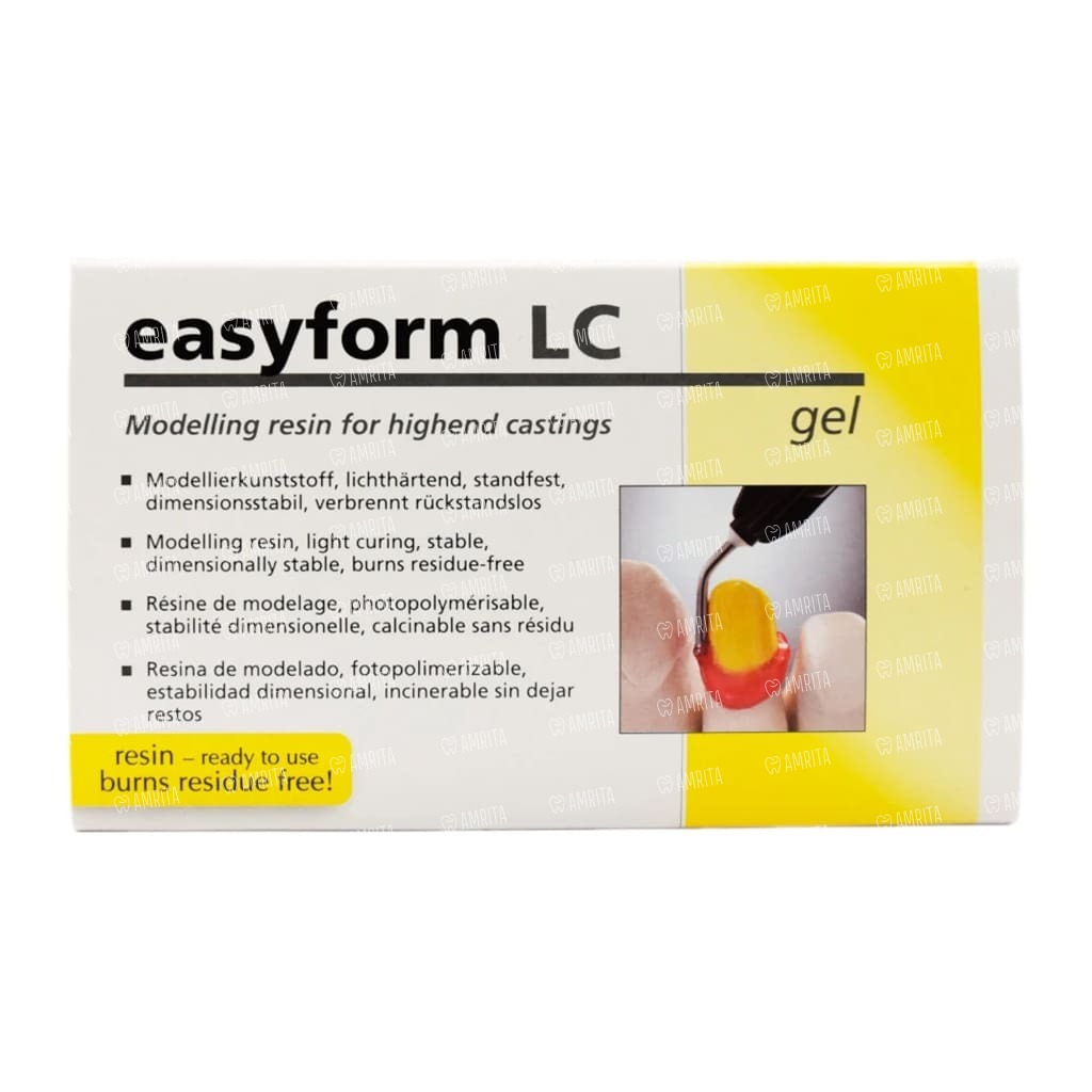 Светоотверждаемый моделировочный гель Easyform LC — профессиональное стоматологическое решение для точного моделирования коронок и мостовидных протезов. Материал красного цвета обеспечивает четкую визуализацию границ и деталей конструкции в процессе работы. Гель легко наносится и моделируется, его использование повышает точность работы и комфорт врача, так как сокращается время на корректировку, достигается идеальная форма протезных конструкций.