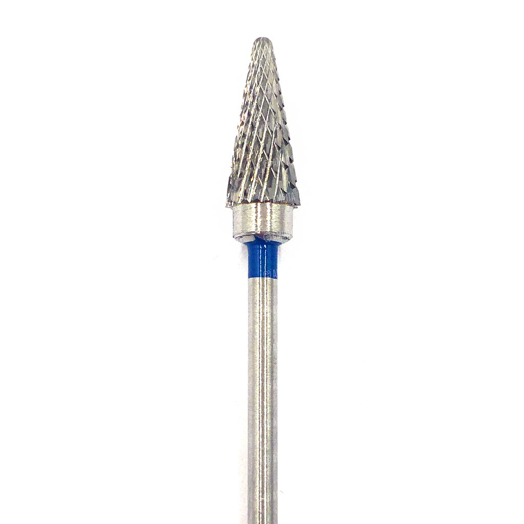 Фреза зуботехническая твердосплавная. Поверхность бора выполнена в виде двойной спиральной симметричной нарезки. Благодаря дизайну режущих кромок рабочей части инструмент обладает высокой режущей способностью и износостойкостью. Применяется для быстрой обработки хромокобальтовых, хромоникелевых и других видов сплавов, подходит для грубой обработки.