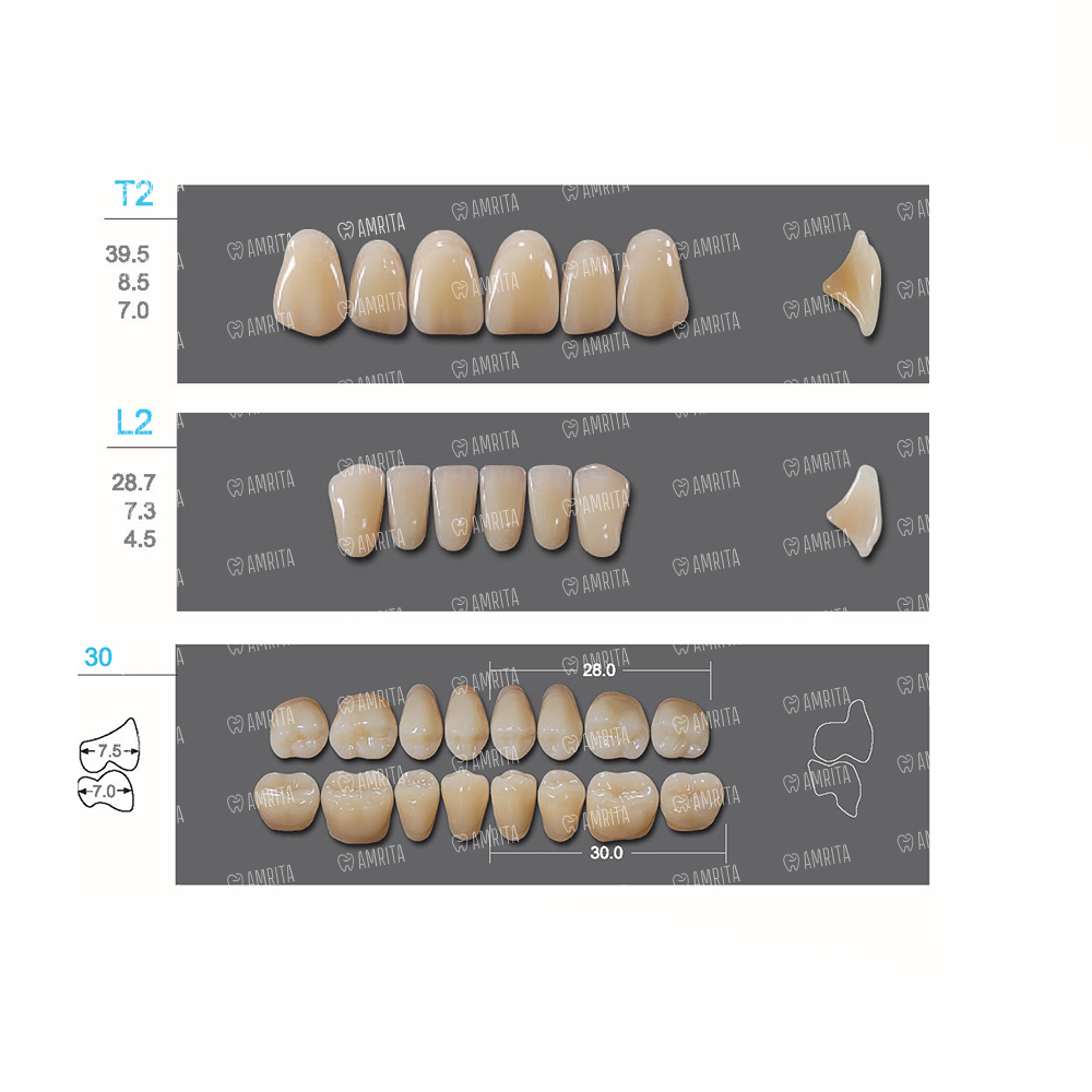 Kaili - зубы акриловые, верхние T2/нижние L2, цвет C2, размер 30, коробка 4х28 шт