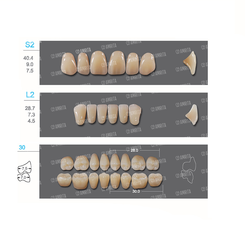 Kaili - зубы акриловые, верхние S2/нижние L2, цвет B3, размер 30, коробка 4х28 шт
