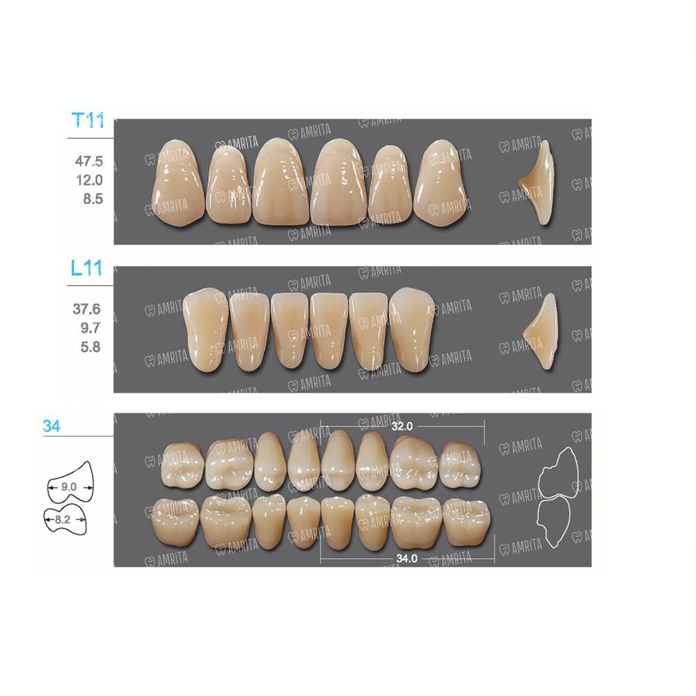 Зубы Kaifeng представлены во всех вариантах цветов по шкале Vita, а многообразие форм позволит реализовать творческий подход при изготовлении протезов. Жесткие зубы, высокая износостойкость.