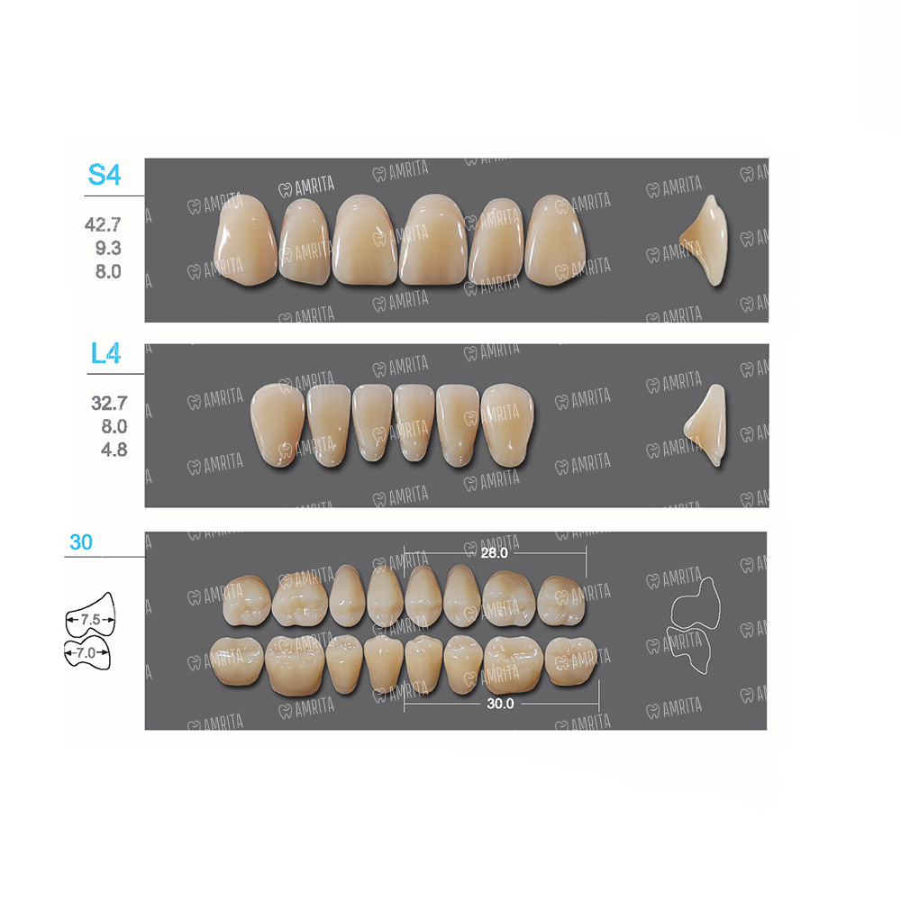 Kaili - зубы акриловые, верхние S4/нижние L4, цвет C3, размер 30, коробка 4х28 шт