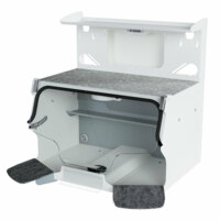 Зуботехнические столы Аверон СЗТ 4.3 МАСТЕР целиком производятся из металла. Столешница защищена от износа и повреждений съемным полимерным покрытием. Столы оборудованы выдвижными подлокотниками, финагелем для вытяжного зонта, большим количеством лотков, карманов, опор под инструмент, гнезд для навешивания держателей и подставок.
