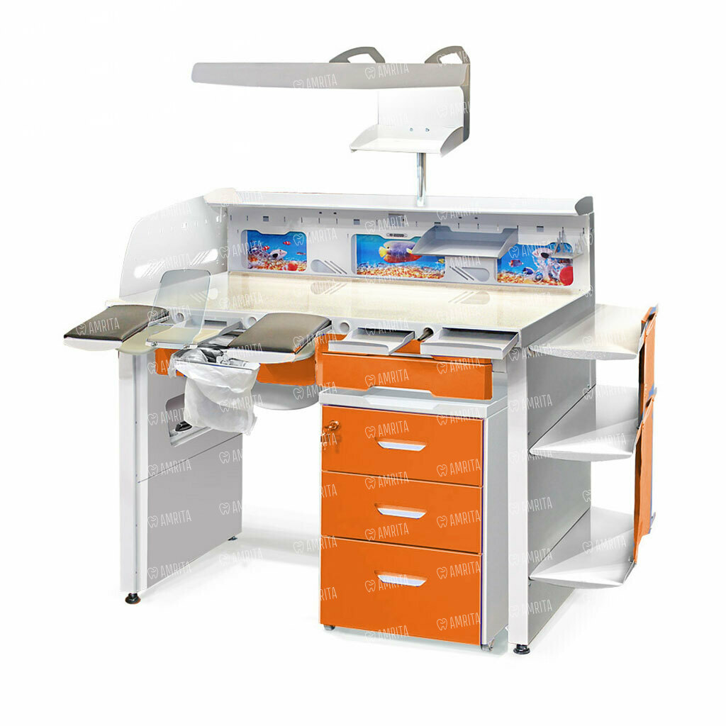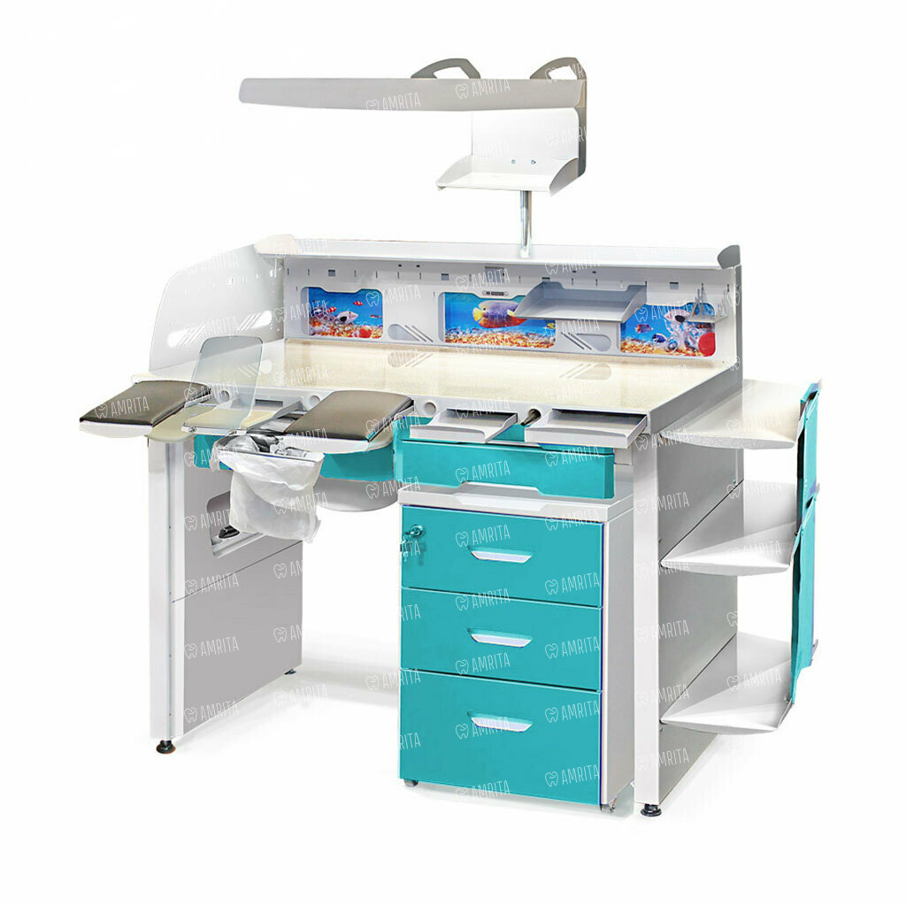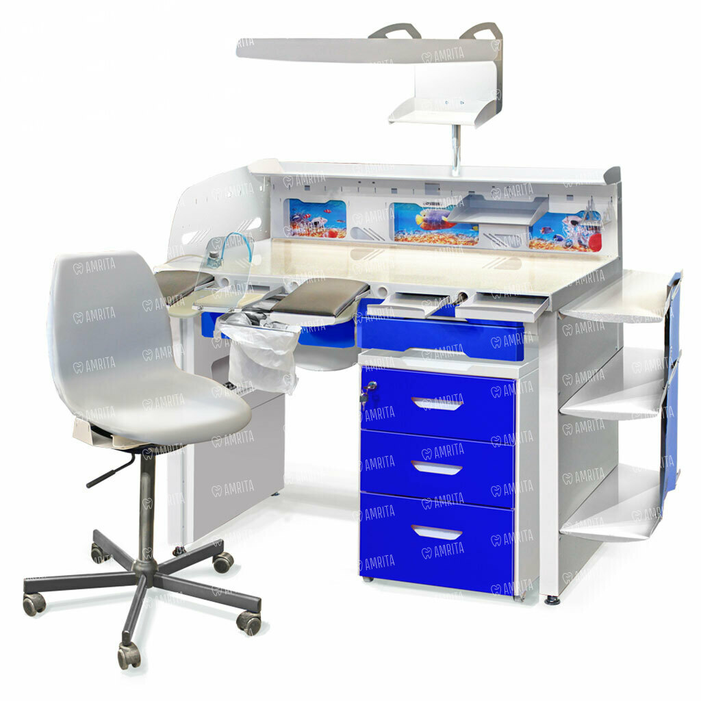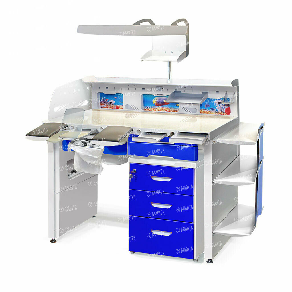 Стол Аверон 4.3 МАСТЕР ТЕХНО 3, для зубного техника, с вытяжкой и светильником на ЛЮКС 1.1 МИНИ НЬЮ