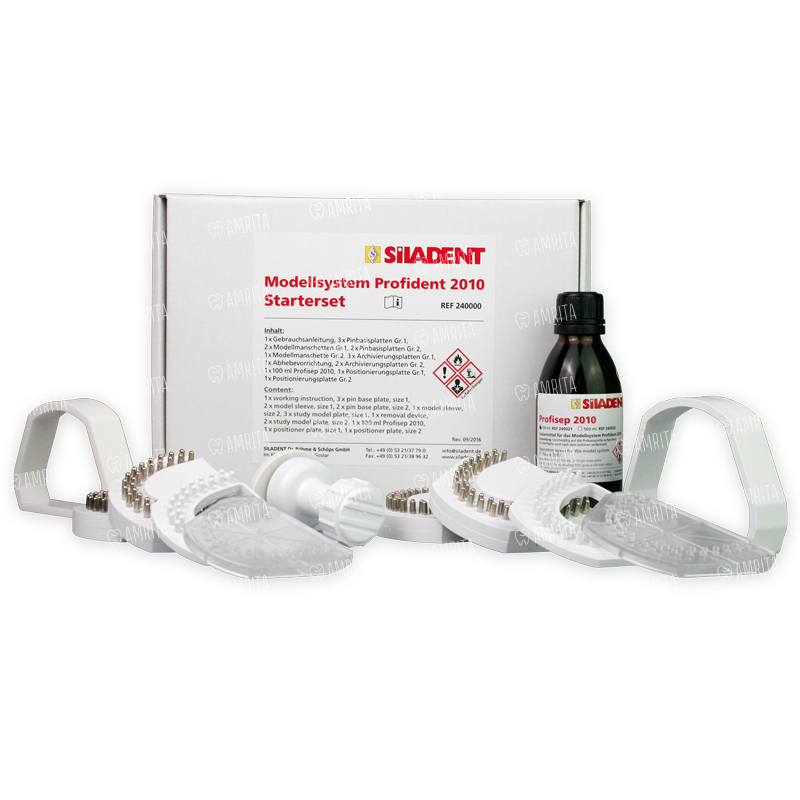 Надежная инновационная система Model system "Profident 2010" предназначена для быстрой отливки разборных гипсовых моделей. Новая система гарантирует максимальную точность моделей, а также экономит время и материал. Больше не нужно вкладывать деньги в дополнительное дорогостоящее оборудование. ProUdent 2010 является аналогом данной системы и также используется для получения высококачественных разборных моделей. После снятия оттиска, достаточно пройти лишь несколько этапов. Все компоненты системы и штифты производятся в двух размерах.