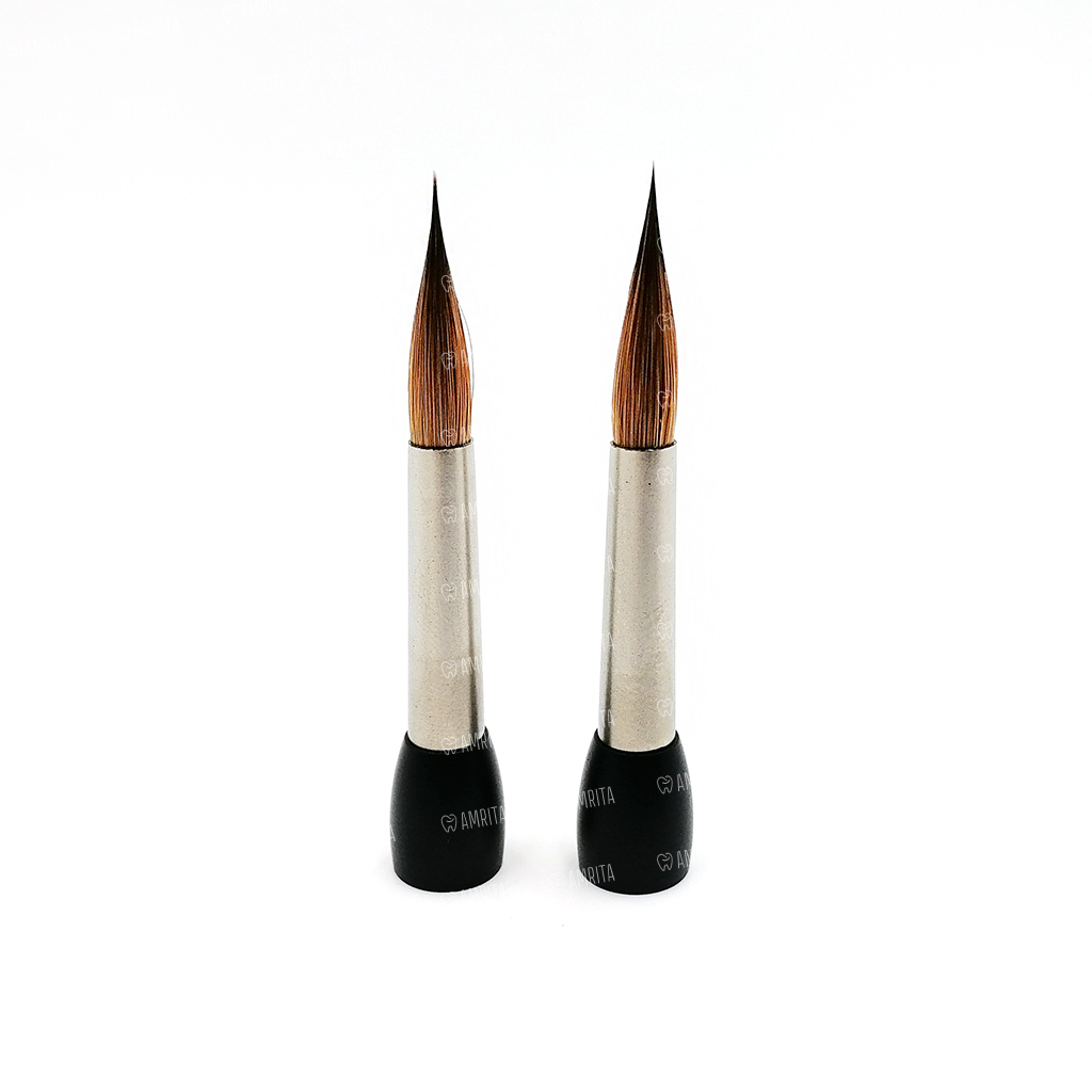 - Рукоятки подходят по размеру ко всем верхним частям кисти, таким образом, нет необходимости иметь несколько кистей — одна рукоятка подходит ко всем размерам кисти. Это заслуга уникального дизайна – винта в системе, который прикреплен к концу верхней части кисти. Таким образом, зубной техник вместо того, чтобы каждый раз покупать новую кисть, может экономить и покупать только наконечник соответствующего размера. Съемные наконечники легко и быстро меняются, что экономит драгоценное время техника.